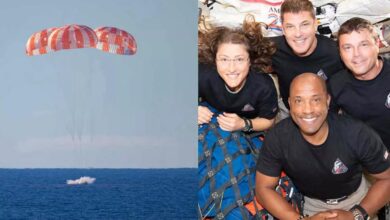 ന്യൂയോര്ക്ക്: ചരിത്രം കുറിച്ച് നാസയുടെ ആർട്ടെമിസ് II ദൗത്യത്തിലെ നാല് അംഗ സംഘം ഭൂമിയിലേക്ക് തിരിച്ചെത്തി. ചന്ദ്രനെ ചുറ്റിയ പേടകം ഇന്ത്യന് സമയം പുലർച്ചെ 5.07നാണ് പേടകം ഭൗമാന്തരീക്ഷത്തിൽ പ്രവേശിച്ചത്. 5.37ന് സാന്റിയാഗോ തീരത്തോട് ചേർന്ന് ശാന്ത സമുദ്രത്തില് സ്പ്ലാഷ് ഡൗണ് നടന്നു. അമ്പത്തിനാല് വർഷത്തിന് ശേഷമാണ് മനുഷ്യർ ചന്ദ്രന്റെ മറുപുറം കണ്ട് തിരിച്ചെത്തിയിരിക്കുന്നത്. ഭൂമിയിൽ…
