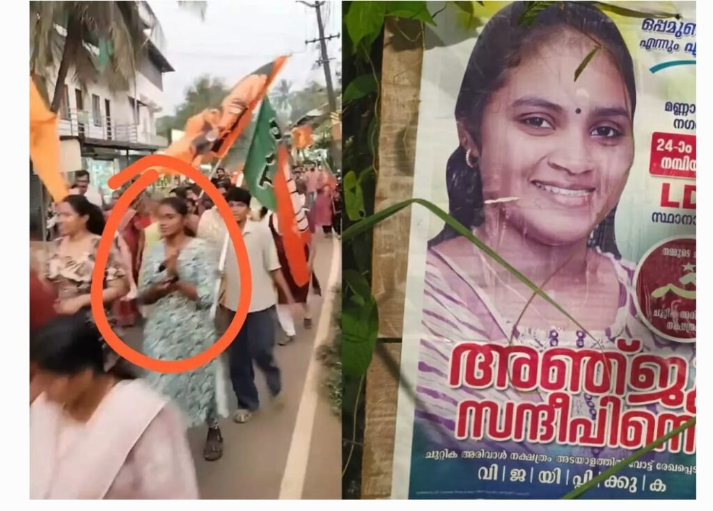 മണ്ണാർക്കാട്: തദ്ദേശ തെരഞ്ഞെടുപ്പിൽ തോറ്റെന്ന് ഉറപ്പിച്ചതോടെ പാലക്കാട് മണ്ണാർക്കാട് നഗരസഭയിലെ എല്ഡിഎഫ് സ്ഥാനാർഥി നേരെ പോയത് ബിജെപിയുടെ ആഹ്ലാദ പ്രകടനത്തിന്. നഗരസഭയിലെ 24-ാം വാർഡിലെ നമ്പിയംപടിയിലെ സ്ഥാനാർഥി അഞ്ജു സന്ദീപാണ് ബിജെപിയുടെ വിജയാഹ്ലാദത്തിൽ പങ്കെടുത്തത്.അരിവാൾ ചുറ്റിക നക്ഷത്രം അടയാളത്തിലായിരുന്നു അഞ്ജു സന്ദീപ് മത്സരിച്ചത്.കാരാകുറുശ്ശി പഞ്ചായത്തിൽ 6-ാം വാർഡിൽ വിജയിച്ച ബിജെപി സ്ഥാനാർഥി സ്നേഹ രാമകൃഷ്ണൻ്റെ വിജയാഹ്ലാദ റാലിയിലാണ് അഞ്ജു സന്ദീപ് പങ്കെടുത്തത്. റാലിയിൽ പങ്കെടുത്ത അഞ്ജു ചുവടുവയ്ക്കുന്നതിന്റെ വിഡിയോയും പുറത്ത് വന്നു. 30 വാർഡുള്ള നഗരസഭയിൽ എട്ട് ഇടത്ത് മാത്രമാണ് സിപിഎം പാർട്ടി ചിഹ്നത്തിൽ മത്സരിക്കുന്നത്. അതിൽ ഒരു വാർഡാണ് നമ്പിയംപടി. യുഡിഎഫിൻ്റെ ഷീജ രമേശാണ് നഗരസഭയിൽ നമ്പിയംപടിയിൽ വിജയിച്ചത്.എന്നാല് ബിജെപി സ്ഥാനാർഥിയായ സ്നേഹ തൻ്റെ അടുത്ത സുഹർത്തായതിനാലാണ് വിജയാഘോഷത്തിൽ പങ്കെടുത്തത് എന്നാണ് അഞ്ജുവിൻ്റെ വിശദീകരണം.താൻ ഇപ്പോഴും സിപിഎമ്മാണെന്നും ബിജെപിയില് ചേർന്നിട്ടില്ലെന്നും അഞ്ജു പറയുന്നു.