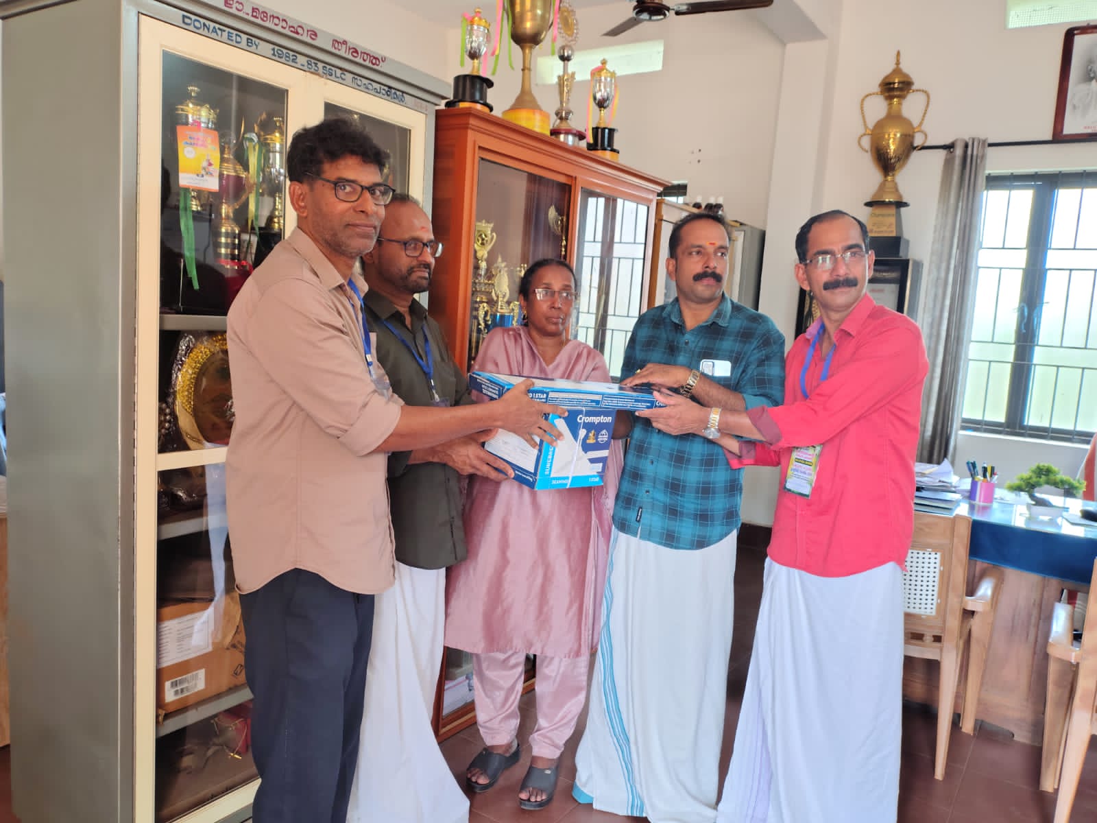 എരുമപ്പെട്ടി: 44 വർഷത്തിനു ശേഷം അവർ ഒത്തുകൂടിയപ്പോൾ എരുമപ്പെട്ടി ഗവ.ഹയർ സെക്കൻഡറി സ്കൂളിന് പൂർവ്വ വിദ്യാർത്ഥികൾ തണൽ മരമായി. 1981-82 എസ് എസ് എൽ സി 10 E ബാച്ച് വിദ്യാർത്ഥികൾ സ്കൂൾ ഓഡിറ്റോറിയത്തിൽ ഒത്തുച്ചേർന്നപ്പോൾ സ്കൂളിന് സ്നേഹസമ്മാനം. പൂർവ്വ വിദ്യാർത്ഥികളായ ജോൺസൻ മാസ്റ്റർ, ഉണ്ണികൃഷ്ണൻ കെ എസ്, വിജയൻ കെ എന്നിവർ ചേർന്ന് പ്രധാന അധ്യാപിക ബീന സി ജേക്കബ്, എസ് എം സി ചെയർമാൻ വി എസ് ശ്രീജൻ, പി.ടി.എ പ്രസിഡന്റ് ഷീബ രാജേഷ് എന്നിവർക്ക് ഫാനുകൾ കൈമാറി.