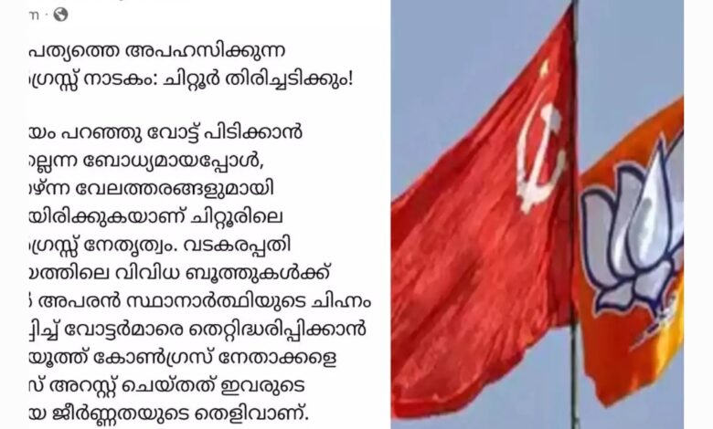 Read More »പാലക്കാട്: പാലക്കാട് ചിറ്റൂർ നിയമസഭാ മണ്ഡലത്തിൽ എൽഡിഎഫ് സ്ഥാനാർഥിക്ക് വോട്ട് അഭ്യർഥിച്ച് ബിജെപി സ്ഥാനാർഥിയുടെ ഫേസ്ബുക്ക് പോസ്റ്റ്. മണ്ഡലത്തിലെ ബിജെപി സ്ഥാനാർഥി പ്രണേഷ് രാജേന്ദ്രന്റെ ഫേസ്ബുക്ക് പേജിലാണ്…