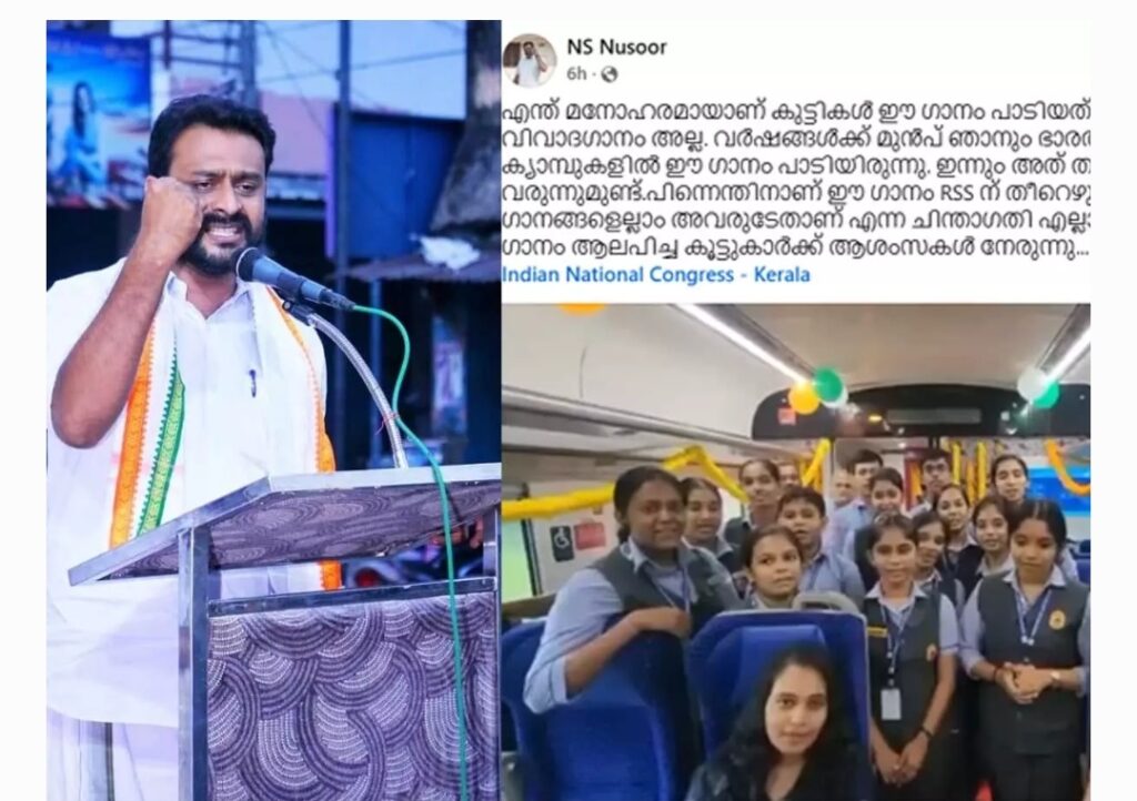 എറണാകുളം: വന്ദേഭാരത് ഉദ്ഘാടനത്തിൽ വിദ്യാർത്ഥികളെ കൊണ്ട് ആർഎസ്എസ് ഗണഗീതം പാടിച്ച സംഭവത്തെ ന്യായീകരിച്ച് കോൺഗ്രസ് നേതാവ് എൻ.എസ് നുസൂർ. അത് വിവാദ ഗാനം അല്ല. താൻ നേരത്തെയും ഇപ്പോഴും ആലപിക്കുന്ന ഗാനമാണ്. ആർഎസ്എസ് ആലപിക്കുന്ന ഗാനങ്ങൾ എല്ലാം അവരുടേതല്ലെന്നും നുസൂർ ഫേസ്ബുക്കിൽ കുറിച്ചു.വന്ദേഭാരതിന്റെ ഉദ്ഘാടനത്തിന്റെ ഭാഗമായി നടത്തിയ സ്പെഷ്യൽ സർവീസിൽ സ്കൂൾ വിദ്യാർഥികളെക്കൊണ്ട് ആർഎസ്എസ് ഗണഗീതം പാടിപ്പിച്ചത് വലിയ വിവാദങ്ങൾക്കിടയാക്കിയിരുന്നു. സംഭവത്തിൽ വിദ്യാഭ്യാസമന്ത്രി വി.ശിവൻകുട്ടിയടക്കം വിമർശനവുമായി രംഗത്തുവന്നിരുന്നു. ഇതിനിടെയാണ് കോൺഗ്രസ് നേതാവായ എൻ.എസ് നുസൂർ ന്യായീകരിച്ചുകൊണ്ട് രംഗത്തെത്തിയിരിക്കുന്നത്. യൂത്ത് കോൺഗ്രസിന്റെ മുൻ സംസ്ഥാന വൈസ് പ്രസിഡന്റ് കൂടിയാണ് നുസൂർ.’ഇത് വിവാദഗാനം അല്ല. താൻ നേരത്തെയും ആലപിക്കുന്ന ഗാനമാണ് കുട്ടികൾ ഇന്നലെ പാടിയത്. ഗാനം ആർഎസ്എസിന് തീറെഴുതി കൊടുക്കേണ്ടതില്ല.’ ആർഎസ്എസ് ആലപിക്കുന്ന ഗാനങ്ങളെല്ലാം അവരുടേതല്ലെന്നും നുസൂർ ഫേസ്ബുക്കിൽ എഴുതി.’താനിതിനെ ആർഎസ്എസിന്റെ ഗണഗീതമായിട്ടല്ല കാണുന്നത്. കുട്ടികളുടെ ഗാനം കേട്ടപ്പോ എന്റെ കുട്ടിക്കാലമാണ് എനിക്കോർമ വന്നത്. ഭാരത് സ്കൗട്ട് ക്യാമ്പിൽ പങ്കെടുക്കുമ്പോഴൊക്കെ ഈ ഗാനം ഞങ്ങൾ പാടാറുണ്ട്. ഒട്ടനവധി കലോത്സവങ്ങളിൽ ഇത് ഞാനും പാടിയിട്ടുണ്ട്. ആർഎസ്എസ് ഇതിനെ തീറെഴുതിയെടുത്തിരിക്കുകയാണ്. പാട്ടിനകത്തെ ഭഗത് സിങ് ആർഎസ്എസുകാരനാണോ? ശ്രീരാമ പരമഹംസൻ അവരിൽ പെട്ടയാളാണോ? ശ്രീനാരായണ ഗുരുവും വിവേകാനന്ദനും ഒന്നും ആർഎസ്എസുകാരല്ലല്ലോ? ഭാരതത്തിന്റെ പൈതൃകം വിളിച്ചോതുന്ന ഇത്തരം ഗാനങ്ങളെ അങ്ങനെ വിവാദമാക്കേണ്ട കാര്യമില്ലല്ലോ’ നുസൂർ മാധ്യമങ്ങളോട് പറഞ്ഞു.പലതും ഏറ്റെടുക്കാനുള്ള ആർഎസ്എസിന്റെ ശ്രമങ്ങളെ സഹായിക്കുന്ന തരത്തിൽ ഈ പാട്ടും എന്തിനാണ് അവരുടെ തലയിൽ വെച്ചുകെട്ടുന്നതെന്നും നുസൂർ ചോദിച്ചു.കേരളത്തിന് പുതുതായി അനുവദിച്ച എറണാകുളം- ബംഗളൂരു വന്ദേഭാരതിന്റെ ഉദ്ഘാടനത്തിനോടനുബന്ധിച്ചാണ് സ്കൂൾ വിദ്യാർഥികൾ ഗണഗീതം പാടിയത്. സംഭവത്തെ വിമർശിച്ചുകൊണ്ട് നിരവധിപേരാണ് ഇതിനോടകം രംഗത്തെത്തിയിരിക്കുന്നത്.