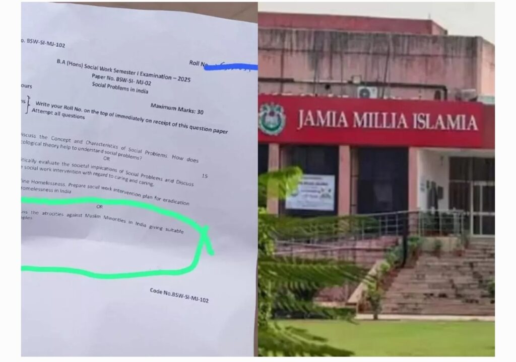 ന്യൂഡൽഹി: പരീക്ഷാ ചോദ്യപേപ്പറിൽ ഇന്ത്യയിലെ മുസ്ലിംകൾക്കെതിരായ അതിക്രമങ്ങളെക്കുറിച്ചുള്ള ചോദ്യം ഉൾപ്പെടുത്തിയതിൽ ഡൽഹി ജാമിഅ മില്ലിയ ഇസ്ലാമിയ അധ്യാപകന് സസ്പെൻഷൻ. പ്രൊഫസർ വീരേന്ദ്ര ബാലാജി ഷഹാരെയെയാണ് സർവകലാശാല സസ്പെൻഡ് ചെയ്തത്. ബിഎ ഒന്നാംവർഷ സോഷ്യൽ വർക്ക് കോഴ്സ് പരീക്ഷയിലായിരുന്നു ചോദ്യം. ‘ഇന്ത്യയിൽ മുസ്ലിംകൾക്കെതിരായ അതിക്രമങ്ങൾ ഉദാഹരണങ്ങൾ സഹിതം വിശദീകരിക്കുക’- എന്നായിരുന്നു ചോദ്യപേപ്പറിലെ അവസാന ചോദ്യം. 30 മാർക്കിനുള്ള ഉപന്യാസ ചോദ്യമായിരുന്നു ഇത്. ചോദ്യം ഉൾപ്പെടുത്തിയത് സംബന്ധിച്ച് നിരവധി പരാതികൾ വന്നതിന് പിന്നാലെയാണ് നടപടിയെന്നാണ് സർവകലാശാലാ അധികൃതരുടെ ഭാഷ്യം. വീരേന്ദ്ര ബാലാജിക്കെതിരെ പൊലീസിൽ പരാതി നൽകുമെന്നും സർവകലാശാല വ്യക്തമാക്കി. ചോദ്യപേപ്പറിൽ ഇത്തരമൊരു ചോദ്യം ഉൾപ്പെടുത്തിയത് എന്തിനാണെന്ന് അധ്യാപകൻ വിശദീകരിക്കണമന്ന് സർവകലാശാല പറയുന്നു. അതേസമയം, സർവകലാശാലയുടെ നടപടിക്കെതിരെ വിദ്യാർഥി സംഘടനകൾ ക്യാംപസിലടക്കം പ്രതിഷേധിക്കുകയാണ്. ഇന്ത്യയിലെ വിവിധ സംസ്ഥാനങ്ങളിൽ മതന്യൂനപക്ഷങ്ങൾക്കെതിരെ ആക്രമണങ്ങൾ തുടരുന്നതിനിടെയാണ് അധ്യാപകനെതിരായ നടപടി.