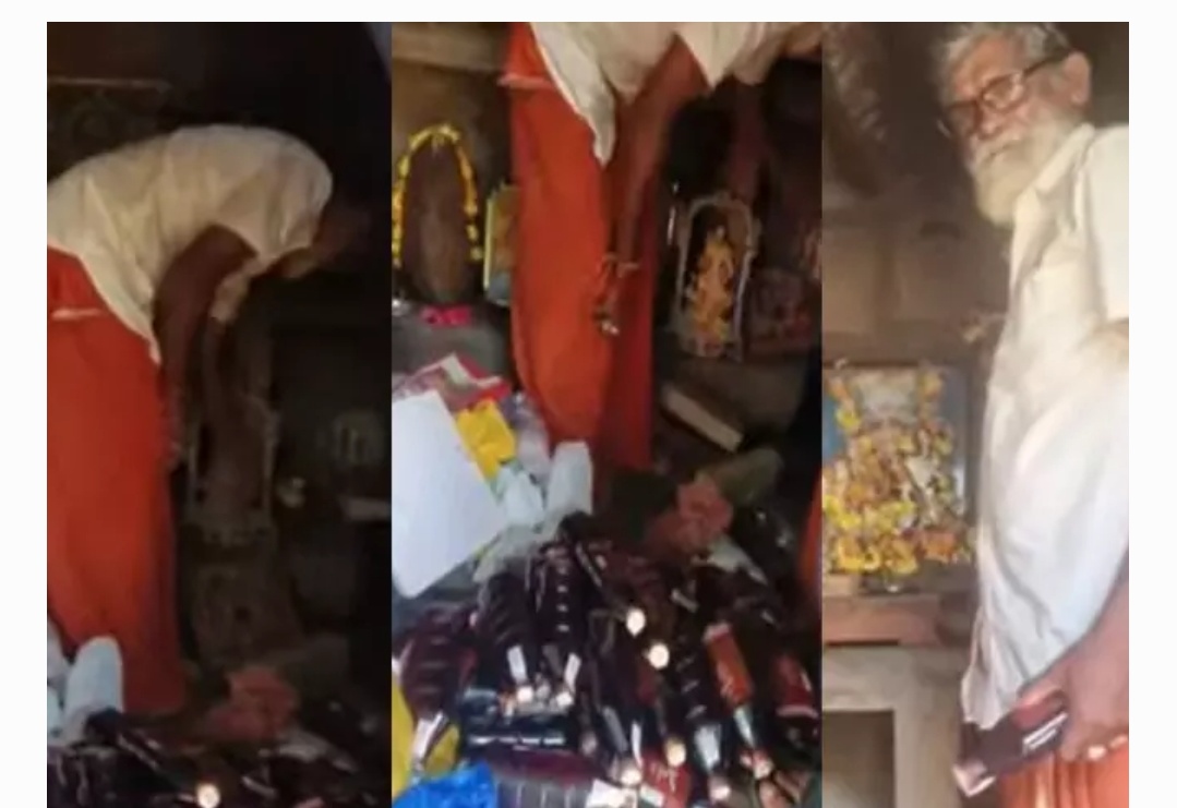 നെയ്യാറ്റിൻകരയിൽ ക്ഷേത്രത്തിലെ ശ്രീകോവിലിനുള്ളിൽ മദ്യശേഖരം; വിഗ്രഹങ്ങൾക്കും ഫോട്ടോകൾക്കും ഇടയിൽ ഒളിപ്പിച്ചത് 30 ലിറ്റർ മദ്യം