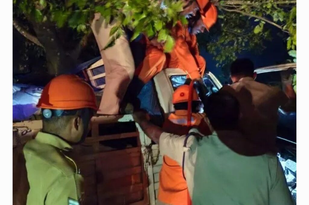 തിരുവല്ല (പത്തനംതിട്ട): നിയന്ത്രണം നഷ്ടപ്പെട്ട മിനിലോറി വൈദ്യുതി പോസ്റ്റിൽ ഇടിച്ചു. കാൽ കുടുങ്ങിയ നിലയിൽ ലോറിയുടെ ക്യാബിനുള്ളിൽ കുടുങ്ങിപ്പോയ ഡ്രൈവറെ അഗ്നിശമനസേന എത്തി രക്ഷപ്പെടുത്തി. തിരുവല്ല – നാലുകോടി റോഡിൽ പെരുംതുരുത്തി റെയിൽവേ ഗേറ്റിനു സമീപം തിങ്കളാഴ്ച പുലർച്ചെ നാലുമണിയോടെയായിരുന്നു അപകടം . കെ.എസ്.ഇ.ബിയുടെ സാധനസാമഗ്രികൾ കയറ്റിവന്ന മിനിലോറിയാണ് അപകടത്തിൽപ്പെട്ടത്. ലോറി ഓടിച്ചിരുന്ന തൃശ്ശൂർ സ്വദേശി ഗിരീഷിനെ അഗ്നിശമനസേന ഉദ്യോഗസ്ഥർ ഹൈഡ്രോളിക്ക് കട്ടർ ഉപയോഗിച്ച് മുൻവശം മുറിച്ചുമാറ്റി പുറത്തെടുക്കുകയായിരുന്നു. നാലുകോടി ഭാഗത്തുനിന്നും വാഹനം ഓടിച്ചു വരവേ റെയിൽവേ ഗേറ്റ് അടഞ്ഞുകിടക്കുന്നത് കണ്ട് പെട്ടെന്ന് ബ്രേക്ക് ചെയ്തപ്പോൾ നിയന്ത്രണം നഷ്ടമായി വൈദ്യുത പോസ്റ്റിൽ ഇടിച്ചാണ് അപകടം സംഭവിച്ചതെന്ന് ഉദ്യോഗസ്ഥർ പറഞ്ഞു. കാലിന് ഗുരുതര പരിക്കേറ്റ ഗിരീഷിനെ തിരുവല്ല താലൂക്ക് ആശുപത്രിയിൽ പ്രവേശിപ്പിച്ചു. തിരുവല്ല നിലയത്തിൽ നിന്നുള്ള സീനിയർ ഫയർ ആൻഡ് റെസ്ക്യൂ ഓഫീസർ സതീഷ് കുമാർ, ഫയർ ആൻഡ് റെസ്ക്യൂ ഓഫീസർമാരായ ദിനുരാജ്, അനിൽകുമാർ, രാംലാൽ, ഷിബിൻ രാജ്, മുകേഷ്, ഷിജു, ആകാശ്, ഹോം ഗാർഡ്മാരായ അനിൽകുമാർ, ലാലു എന്നിവരും ചങ്ങാനാശേരി നിലയത്തിൽ നിന്നുള്ള സീനിയർ ഫയർ ആൻഡ് റെസ്ക്യൂ ഓഫീസർ നിയാസ്, ഫയർ ആൻഡ് റെസ്ക്യൂ ഓഫീസർമാരായ മനോജ്, റിനു, മനുകുട്ടൻ, ജസ്റ്റിൻ എന്നിവരുടെ നേതൃത്വതിലായിരുന്നു രക്ഷാപ്രവർത്തനം.