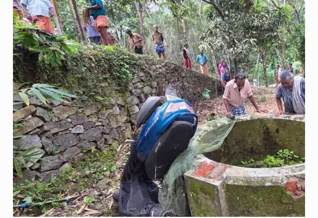 സ്കൂട്ടർ നിയന്ത്രണം വിട്ട് റോഡരികിലെ താഴ്ചയിലേക്ക് മറിഞ്ഞു, അമ്മയും മകനും കിണറ്റിൽ വീണു